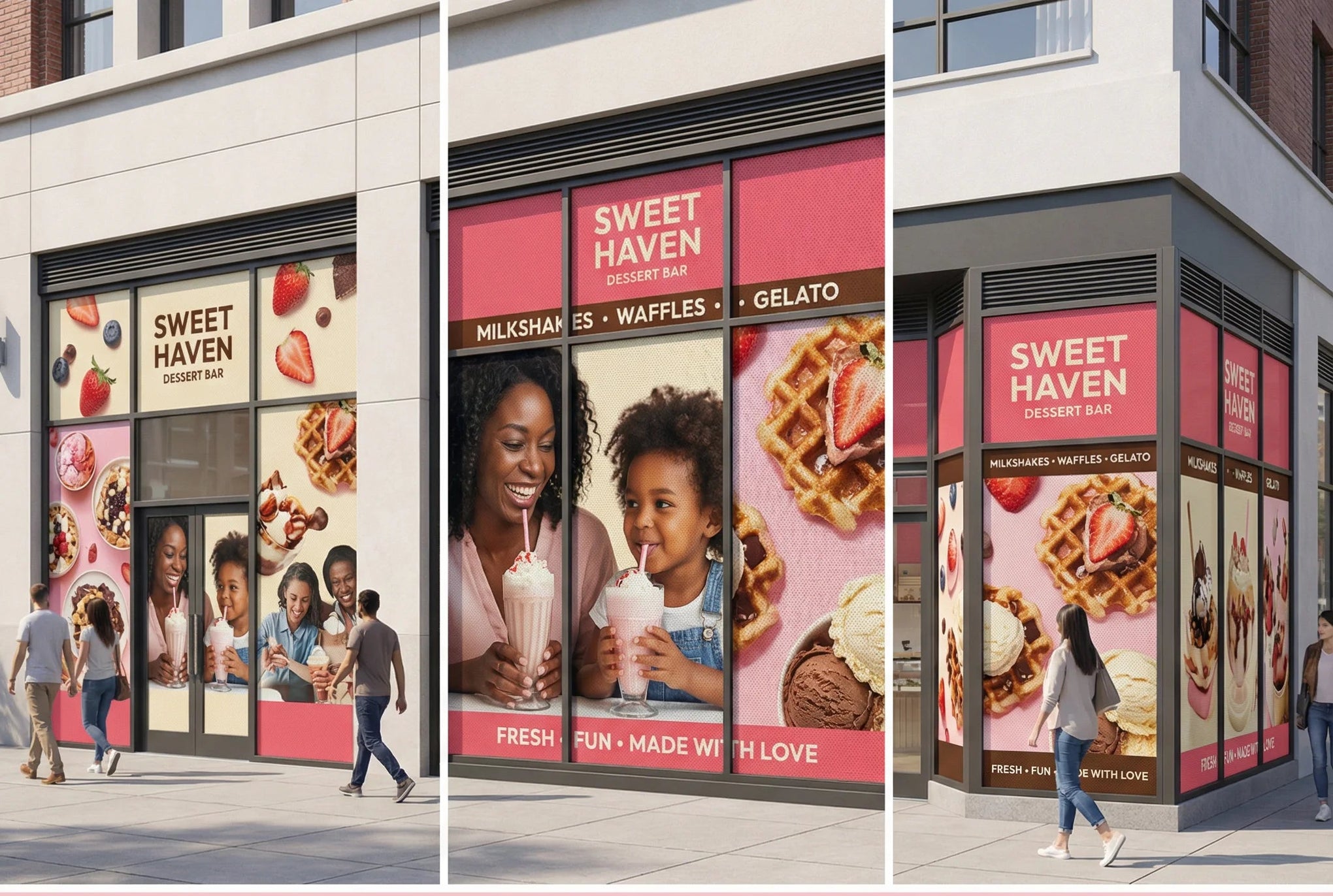 Our perforated window graphics are printed in full color on a see-through material with small openings. From the street, customers see your design clearly. Inside your space, the view stays open and comfortable.